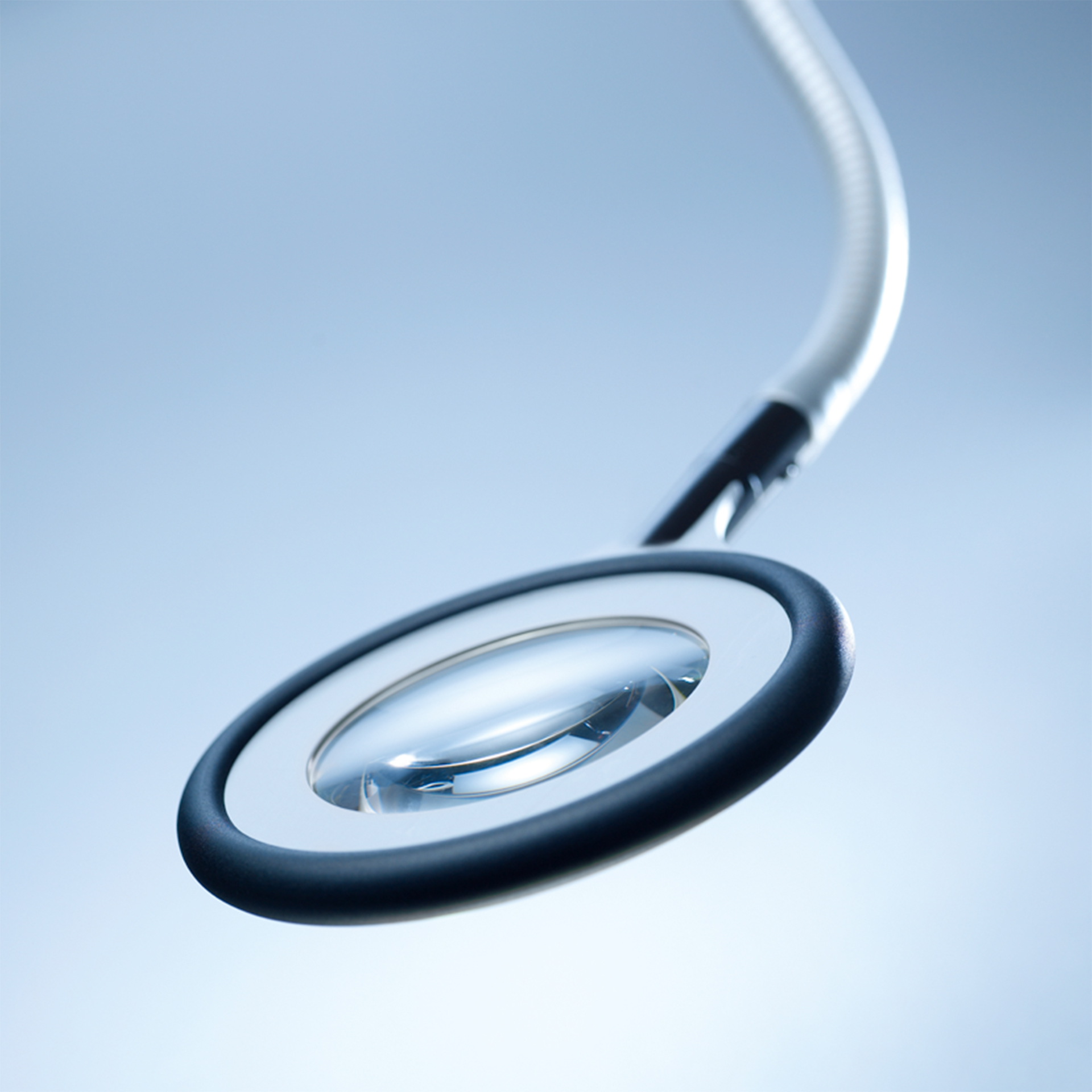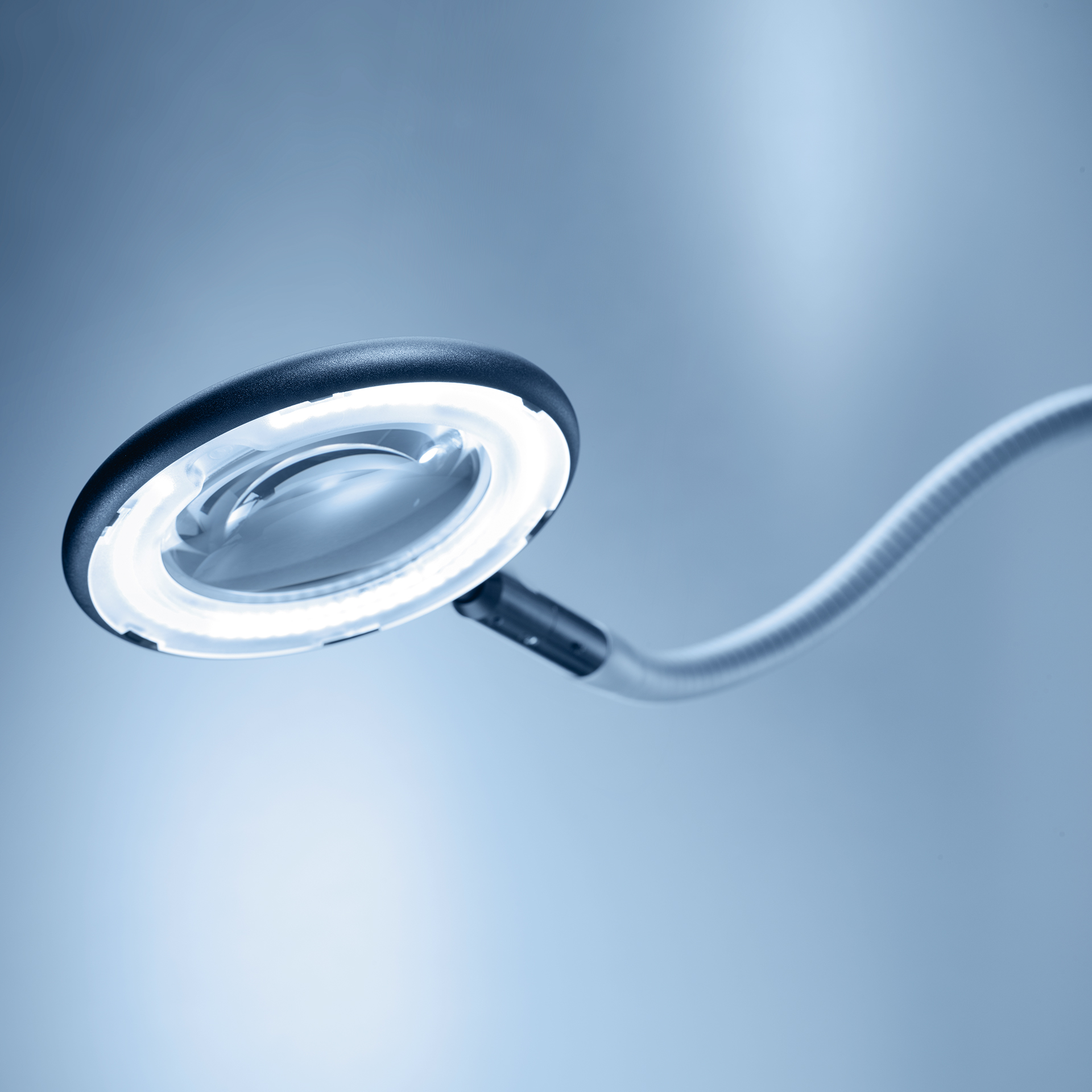 The RING LED is virtually indestructible. The lamp head, stand tube and flexible tube are made of robust metal. The LED and circuit board are insensitive to vibrations. And the closed luminaire head also allows easy and quick cleaning. The soft-touch sensor developed by Waldmann is integrated into the luminaire head and is therefore easily accessible by hand. A gentle touch switches the magnifying luminaire on and off.