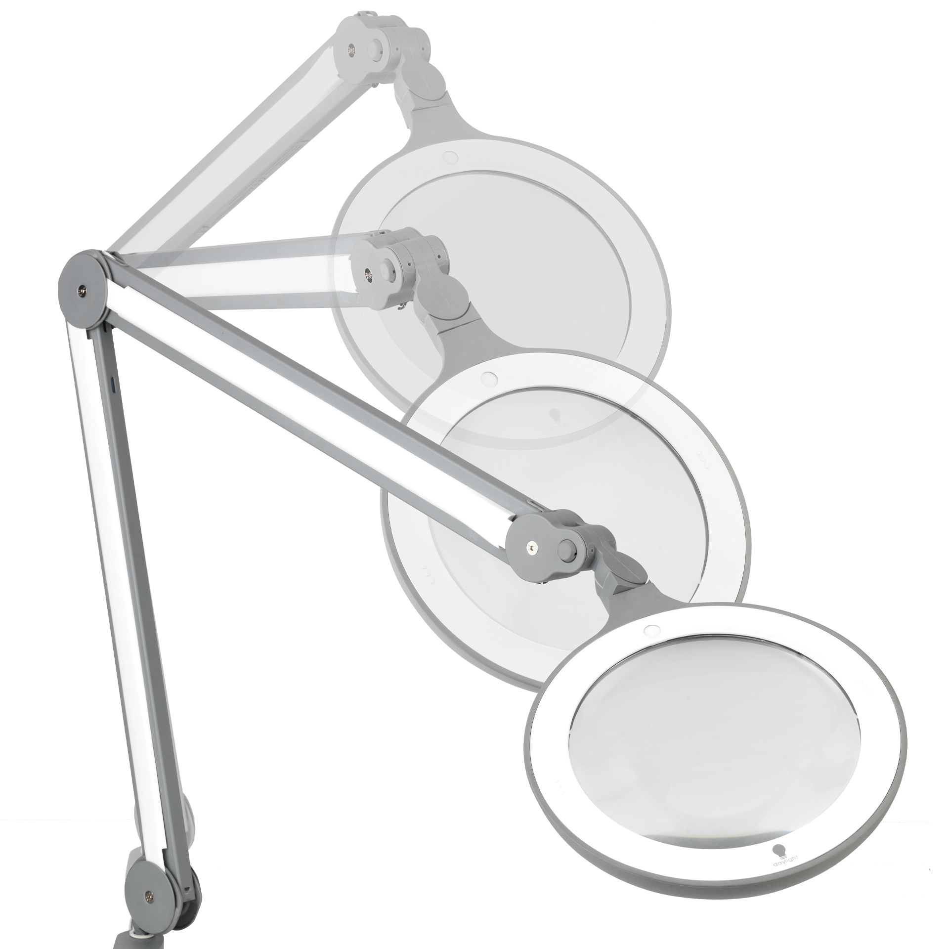 Die iQ Lupenleuchte verfügt über eine leichte Acryllinse mit einem großen Sichtfeld. Der Lupenkopf ist frei beweglich und lässt sich beliebig positionieren, sodass eine maximale horizontale und vertikale Bewegungsfreiheit gegeben ist. Der robuste Arm mit integrierten Federn bietet eine gute horizontale Reichweite und Positionsfestigkeit. Eine zusätzliche Schwenkarmlinse mit 12 Dioptrien (4,0X) ist ebenfalls enthalten. Ein seitlicher Schutz hilft, die Leuchte sauber zu halten. Die Lupe verfügt über einen abnehmbaren Linsenschutz.